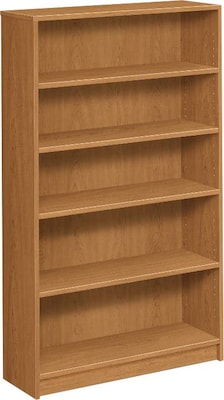 HON® 1870 Series Wood laminate bookcase in harvest finish measuring 60 1/8" x 36" x 11 1/2" comes with five shelves for storing your favorite books.