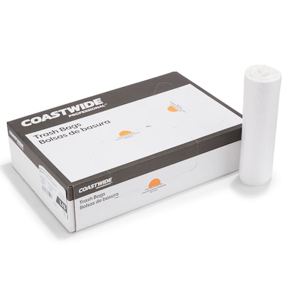 Clean up your workspace with these trash bags. The low-density polyethylene prevents stretching by heavy garbage to avoid leaks, while the 1.5-mil thickness resists puncturing by sharp objects to enhance durability. These Coastwide Professional™ low-density trash bags are clear to let you view the contents and prevent theft, while the 55 to 60-gallon capacity helps avoid overfilling to keep your environment mess-free.