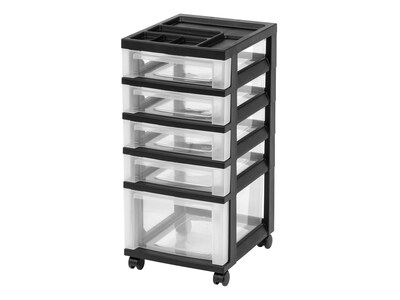 Iris 5-Drawer Rolling Cart with Plastic Organizer Top, Clear/Black (116865)