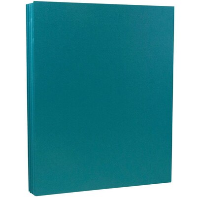 JAM Paper Teal brite hue paper measuring 8 1/2" x 11" is made from 30 percent post consumer paper and has a paper weight of 32 lbs., sold as 50 per pack.