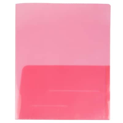 JAM Paper® Red Plastic Regular Weight Two Pocket Presentation Folders are made out of light-weight, protective plastic that allows for both ease in transporting the folders from place to place, and reliable durability. Optimal for standard sized documents, each of these folders measure 9 x 12 inches in size. Each one has the capacity to fit 20 standard sized sheets of paper! To help you better sort, organize, and keep your documents, each of these folders contains two pockets on the inside. The right-hand-side pocket features two slots for holding and displaying business cards, brochures, CDS, and other small items. These folders are sold in a pack of 108 and feature a light red, grapefruit-like color.