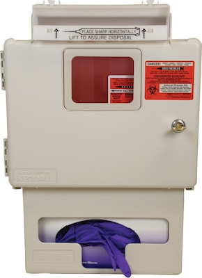 - Includes one lockable beige wall enclosure (#30386) and one transparent 5qt. sharps container (#1007SA)