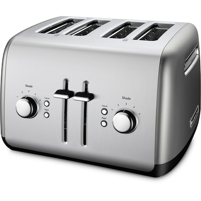 KitchenAid® 4-Slice toaster with manual high-lift lever looks magnificent in contour silver color which lasts long featuring rigid stainless steel construction and built in steel interior.
