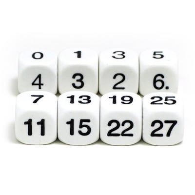 Koplow Games Math numbers dice set features math numbers assortment and has eight 16 mm white opaque design.
