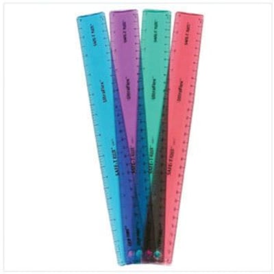 Learning Resources® UltraFlex™ SAFE-T® 12" Ruler is made of plastic for superior quality and perfect for ages 5 - 13 age. Ruler features transparency that helps students to make accurate measurements and ideal for measure curved/angular surface.