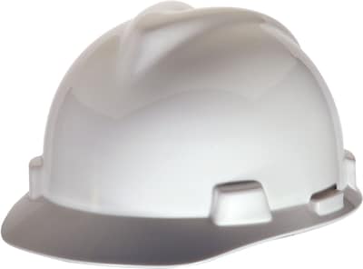 Mine Safety Appliances V-Gard Polyethylene 4-Point Pinlock Suspension Short Brim Hard Hat, White (463942)