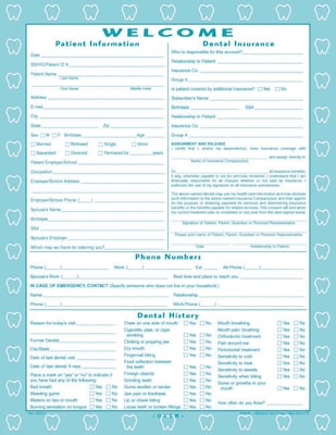 Medical Arts Press® Dental Registration and History Form; Tooth Border, 250 Sheets/Pack (20596)