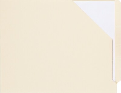 Pocket is closed on two sides with a full bottom tab for quick access to forms and exam charts. Tab has embossed score lines for easy label placement. Sturdy 14 pt. manila stock. 50 per box. Size: 12-1/4"W x 9-1/2"H overall, 11-3/4" body.