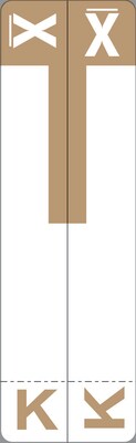 Combine patient's name and color-coding on one label. Each label is printed with 2 letters, just strip away the letter not used. Designed to match Smead® Alpha-Z® name labels. 100 Light Brown "K & X" labels per pack. Size: 3-5/8" x 1-1/8" before folding.