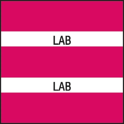Double bands of Magenta and "Lab" title appear on both sides. Scored for easy application. Permanent adhesive backing with laminated mylar coating. Use with Dividers 20256 and 20257. 102 tabs per package. Size: 1-1/2" x 1-1/2" (before folding).