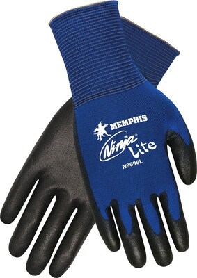 MCR SAFETY® Ninja® Lite Polyurethane Coated Palm and Fingertip Dipped Gloves, Blue, Large, 12/Pair