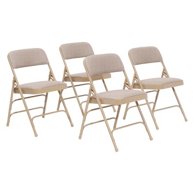 NPS 2300 Series Fabric Padded Triple Brace Double Hinge Premium Folding Chairs, Cafe Beige/Beige, 4/Pack (2301/4)