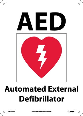 National Marker "Aed " Safety sign with graphic measures 10" x 14" and is made rigid plastic material for added durability.