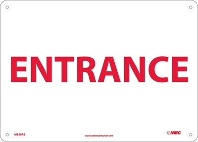 National Marker "Entrance" Safety sign measuring 10" x 14" is made of 0.040" aluminum material for durability.