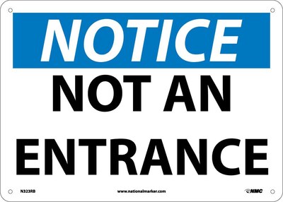 National Marker "Notice Not An Entrance" Safety sign measuring 10" x 14" is made of rigid plastic material for durability.