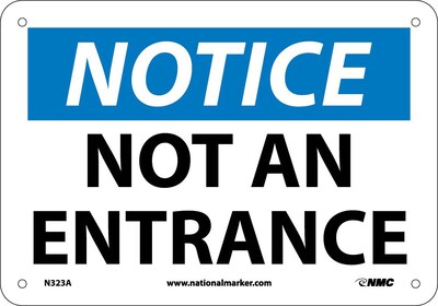 National Marker "Notice Not An Entrance" Safety sign measuring 7" x 10" is made of 0.040" aluminum material for durability.