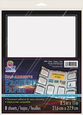 Pacon® White/black self-adhesive project paper can be used to add instant borders to your projects and measures 8 1/2" x 11", sold as 8 sheets per pack.