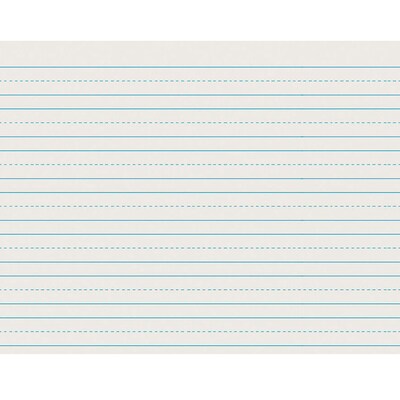 Pacon® Skip-A-Line newsprint paper for grade 2nd measuring 11" x 8 1/2" features 3/4" light blue ruling on both sides. Paper includes skip-a-line midline that serves as a guide for controlled writing.