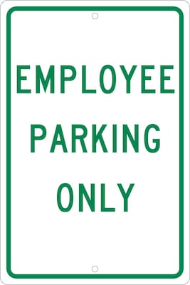 National Marker "Employee Parking Only" Safety sign measures 18" x 12" and is made 0.063" aluminum material for added durability.