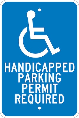 National Marker "Handicapped Parking Permit Required" Safety sign measures 18" x 12" and is made 0.080" reflective aluminum material for added durability.