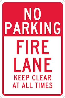 National Marker "No Parking Fire Lane Keep Clear At All Times" Safety sign measures 18" x 12" and is made 0.040" aluminum material for added durability.