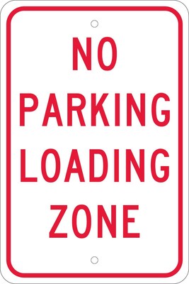 National Marker "No Parking Loading Zone" Safety sign measures 18" x 12" and is made 0.080" reflective aluminum material for added durability.