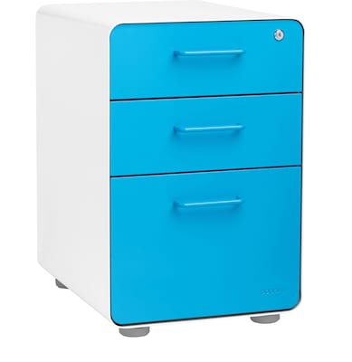 Poppin Stow 3-Drawer Mobile Vertical File Cabinet, Letter/Legal Size, Lockable, 24"H x 15.75"W x 20"D, White and Blue (100429)