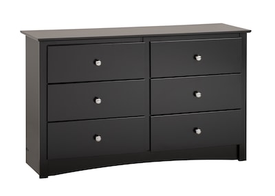 Prepac™ 6-Drawer youth size dresser in black finish is constructed from CARB-compliant laminated composite woods which give an elegant look to any room. Drawer dresser has a sturdy top to pile on your books, cell phone, alarm clock, lamp and more.