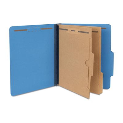 Quill Brand® 2/5-Cut Pressboard Classification Folders with Pockets, 2 Partitions, 6-Fasteners, Letter, Blue, 15/Box (736026)