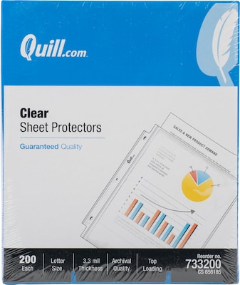 Quill Brand® Top-Loading Sheet Protectors, Heavyweight, 8.5" x 11", 3.3 Mil, Clear, 200/Box (733200)