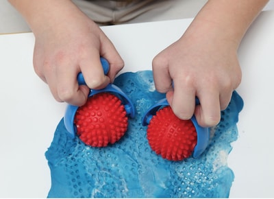 Each tool has an easy to use plastic handle that fits nicely into a child's palm, these patented tools are designed for young children to use as palm rollers.
