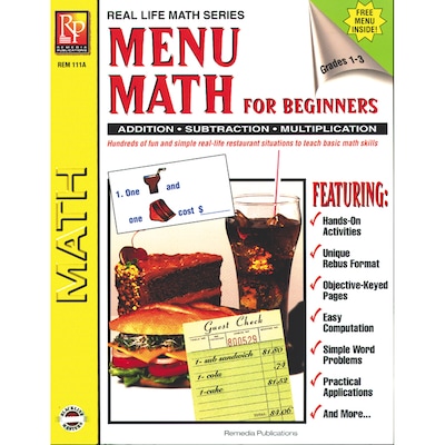 - Reinforce your basic math program with menu math for beginners this fun and effective book teaches simple addition, subtraction, and multiplication through the use of real-life restaurant situations