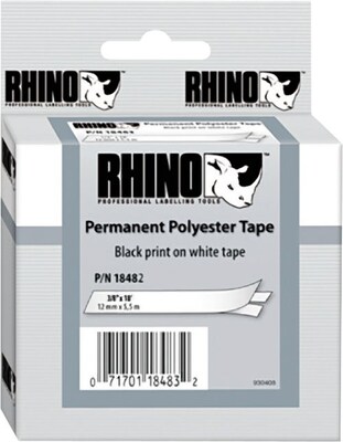 DYMO Rhino Permanent Polyester DYM18482 Label Maker Tape, 3/8"W, Black on White