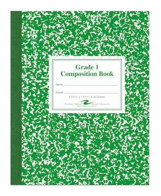 Practice your writing and penmanship skills with this green marble grade 1 composition book with 1" lines.