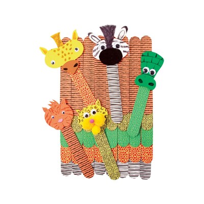 The Roylco Wild Animal 7" x 1" Craft Sticks come in a pack of 50 and are ideal for kiddie activities and crafts.