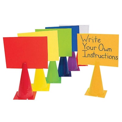 - Cones with cards can describe activities, reinforce instructions or set up a directional course