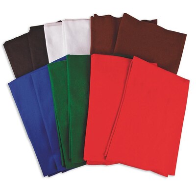 Cut various shapes by using the S&S Worldwide Felt Sheets and use them for making crafts and to decorate masks, book covers, hats, and much more. There are 12 craft felt sheets in a pack that come in an assortment of 6 colors including red, green, blue, white, brown, and black. They are machine washable, so you can easily remove stains and reuse them.