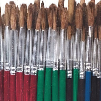 S&S® Camel hair brush set includes 24 brushes each of size 1, 2, 3, 4, 5 and 6 all packed in canister. Brush features seamless, rustproof ferrule and has natural wood handle.