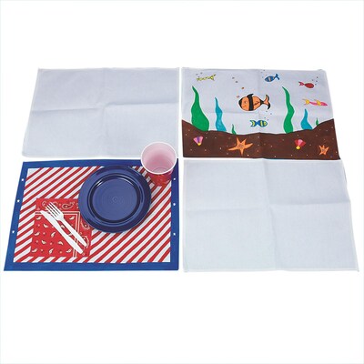 S&S® Color-Me™ Canvas placemats are perfect for enhancing fine motor skills or stimulating creativity in children. Canvas placemats are made from 100 percent cotton and measures 18 1/2" X 13" size, sold as 24 per pack.