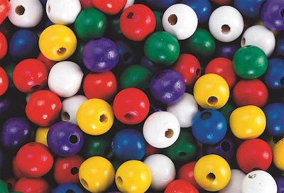 S&S® Large wooden beads in round shape measuring 14 mm are ideal for jewelry making. Beads in bright assorted colors feature 3.5 to 4 mm holes and are sold as 1000 per bag.