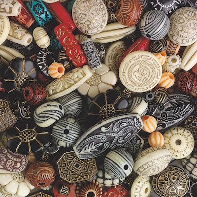 S&S® Old world Moroccan style beads in muted earth tones and rich colors have size raging from 4 to 39 mm and weigh 1 lb. Beads with 2 to 4.5 mm holes are economical and sold as 450 per pack.