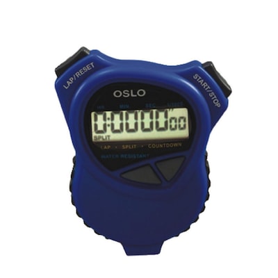 S&S® Robic® Oslo® Stopwatch countdown timer in blue color is smartly designed combining a multi-mode stopwatch with an easy-to-use countdown timer to measure an event, lap or split timing with 1/100 second precision to 10 hours.