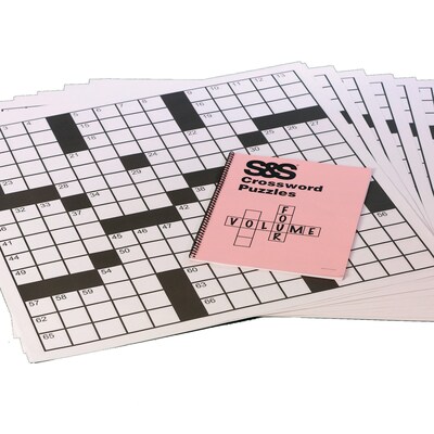 2' x 2' set 4 giant crossword puzzle set is address cognitive skills like problem solving and sustained attention and useful mnemonic and aid to promote socialization, it includes grid sheets and one book of puzzle set clues. S&S® Giant Crossword puzzles set 4 comprising 67 words per puzzle with clues/solutions & thirty 2''X 2''grid sheets grants opportunity to enhance cognitive skills. Set perfect for use in big groups also features intermediate levels.