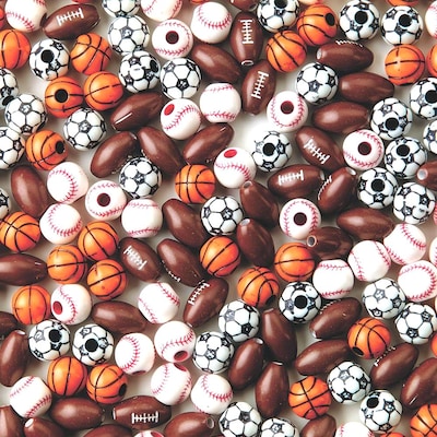 - Includes baseball, football, soccer and basketball beads