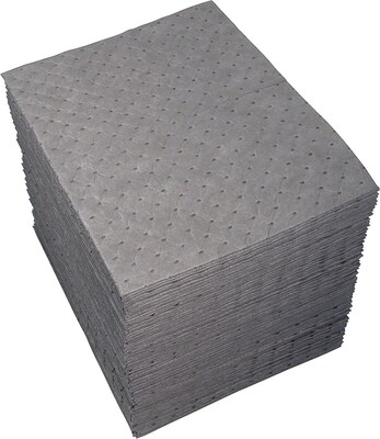 SPC® GP™ 30 gal Sorbent pad in gray color features efficient single-ply construction and it helps to hide the polluted areas. 15" x 19" Pad is made of high grade dimpled universal polypropylene and it absorbs all fluids, sold as 100 pads per carton.
