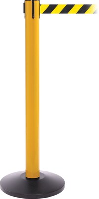 SafetyPro 300 Yellow retractable belt barrier is made of 0.055 ga durable steel/stainless steel with cast iron base for stability. Belt barrier with 16' black/yellow belt is specifically designed for restricting access to work or cleaning areas.