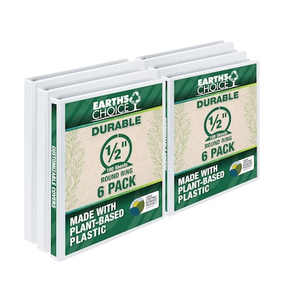 Samsill Earth's Choice Plant-Based Durable 1/2" View Binder, 3 Ring Binders, Made in USA, White, 6/Pack (I08917)