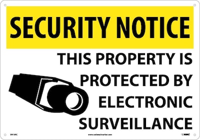 National Marker "Security Notice This Property Is Protected By Electronic Surveillance" Safety sign measures 14" x 20" and is made rigid plastic material for added durability.