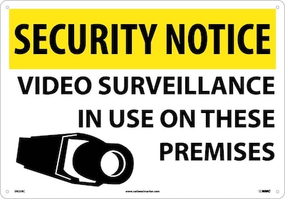 National Marker "Security Notice Video Surveillance In Use On These Premises" Safety sign measures 14" x 20" and is made rigid plastic material for added durability.