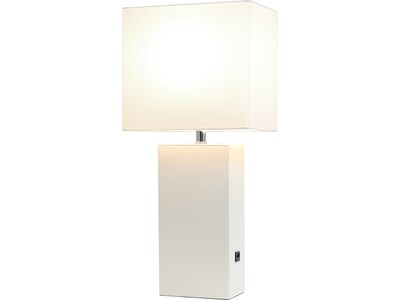 Elegant Designs Incandescent Leather Table Lamp, White (LT1025-WHT)